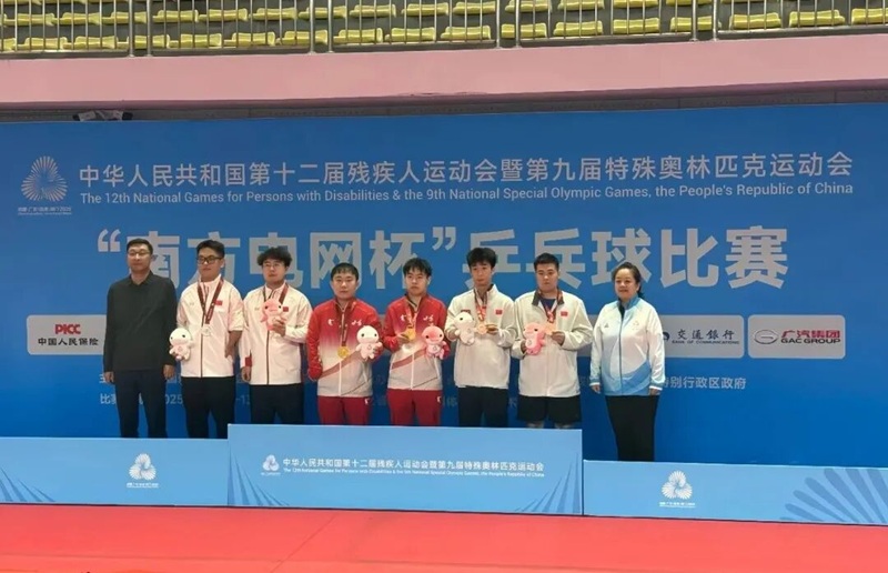 甘肃代表团在第十二届全国残运会乒乓球比赛中获得男子团体冠军